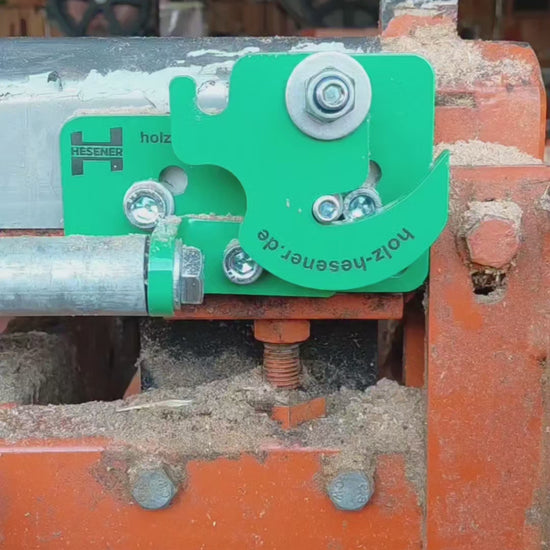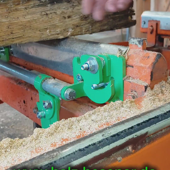 Il se monte directement sur le banc de la scierie et peut être utilisé aussi bien à droite qu’à gauche – sans hydraulique supplémentaire ni transformation.